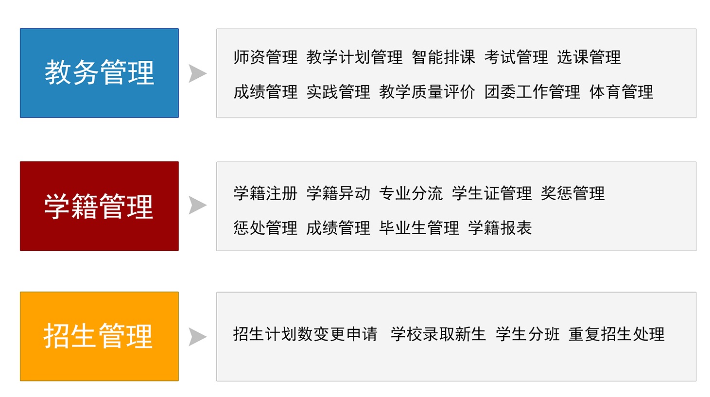 综合管理信息平台利用先进成熟的计算机技术、网络技术与数据库技术,通过科学合理的管理规范与完备通用的技术规范,基于统一的信息标准整合、集成各种信息资源,构建安全、可靠可扩展、易维护的综合管理信息平台,实现学校各项管理工作的信息化,为广大师生提供简便、快捷的网络化信息服务。 平台设置灵活,成功率高,支持分层次、分批次的操作,能够适应复杂的不规则情况的特殊要求,并可对排课数据的合理性进行分析选优;全新的教学质量过程监控机制,提供课堂教学、实践、教学检查、考试环节各方面智能分析采样功能;提供强大的教学运行数据分析功能,支持对现有数据进一步挖掘。