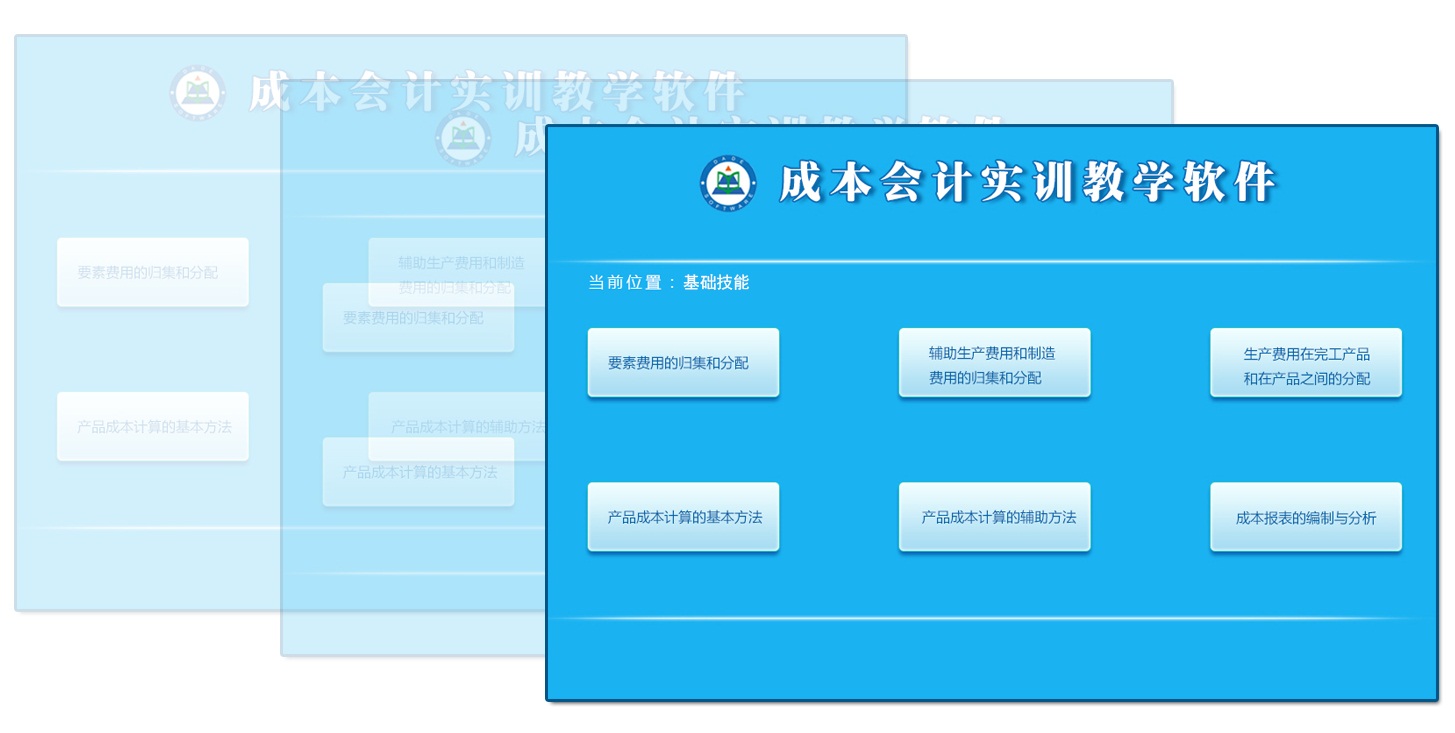 根据成本会计教学大纲的要求,软件分为基础技能和综合实践两大模块,内部数据均以真实的案例为基础,并根据教学进度和内容深度合理组织,从而保证课程实训与教学的同步。