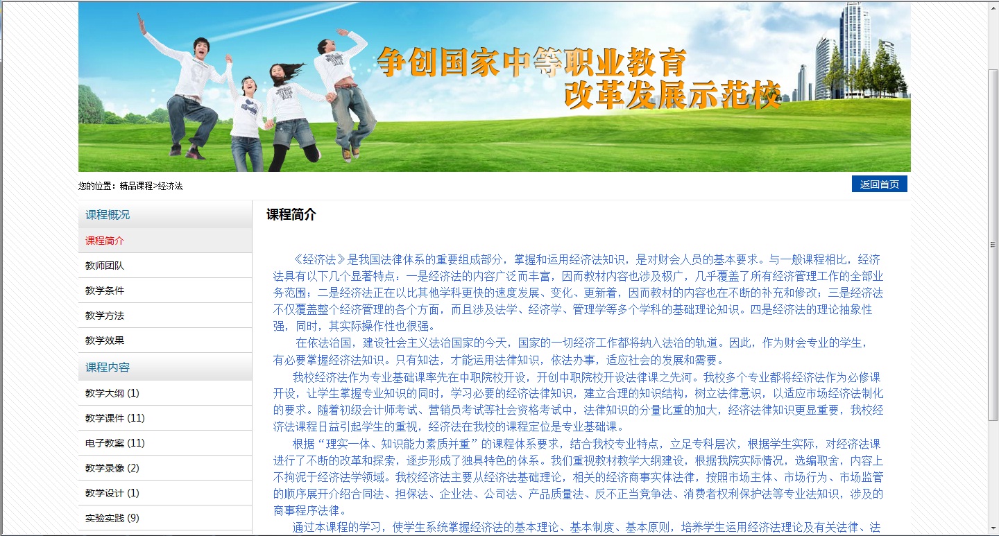精品课程建设是一项综合系统工程,其中包括教学队伍建设、教学内容建设、教材建设、实验建设、机制建设以及教学方法和手段建设等六个方面内容。精品课程平台设计目的是倡导教学方法的改革和现代化教育技术手段的运用,提高实践教学质量,实现优质教学资源共享,发挥学生的主动性和积极性,培养学生的科学探索精神和创新能力。 精品课程平台通过在课程网站中嵌入教学课件、视频等工具来满足精品课程建设的教学需求,逐步完善课程资源的同时,进行教学方法和手段的改革和创新。